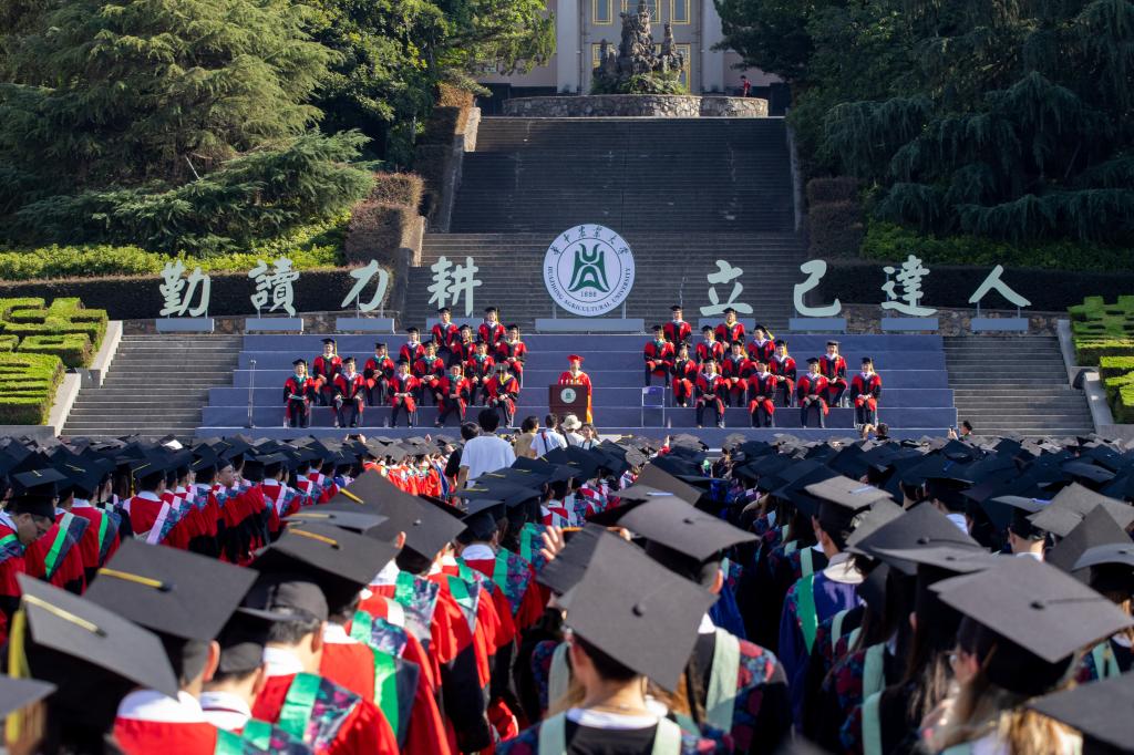 毕业典礼在清澈响亮的《华中农业大学校歌》声中闭幕。