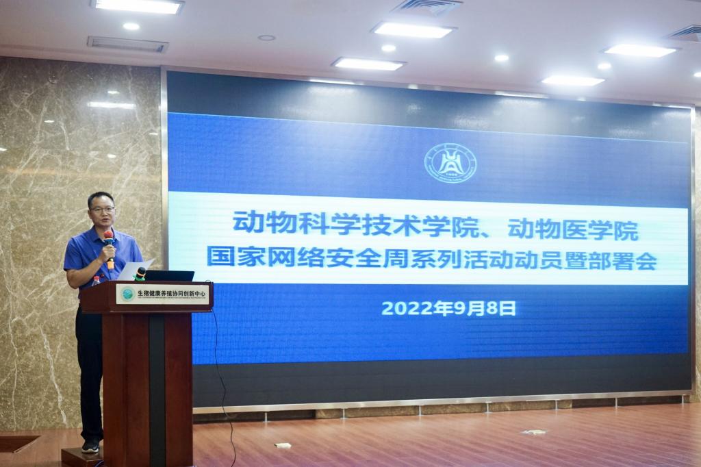 (通讯员:石涛 摄影:孙喆 余思薏 杨春)9月8日下午,动科动医学院在生猪健康养殖协同中心一楼报告厅举行党风廉政建设宣传教育月、师德师风宣传教育月及国家网络安全周系列活动动员暨工作部署会。全体学院教职工参加了会议。