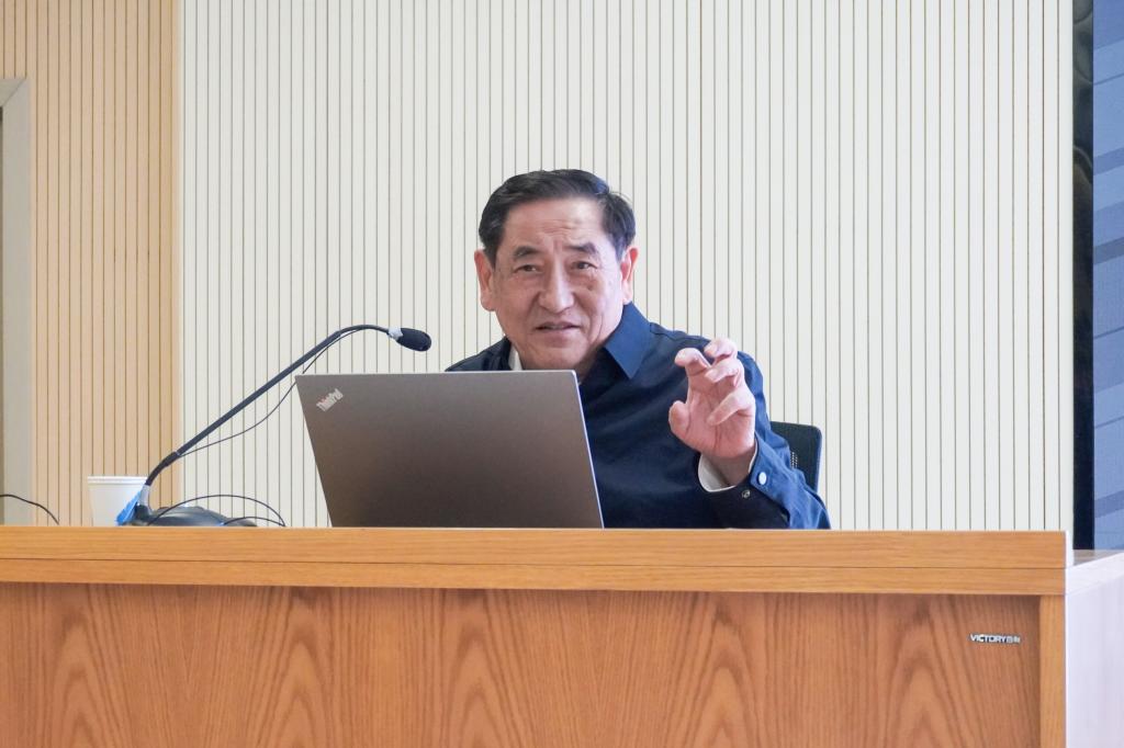 陈焕春从养殖业的重要意义及产业面临问题、我国养殖业转型升级的探索、健康养殖等三个方面展开本次报告。他展示并分析了2020年我国生猪产值占农业总产值的14.28%的数据,强调畜禽养殖产业是我国农业的支柱产业。畜禽养殖产业关系着食物供给与粮食安全、公共卫生与食品安全、环境与生态安全。陈焕春着眼中国畜牧业未来,主张创造科学绿色的养殖方式,带动农业经济发展,满足国家需求。将想法转化为现实,是一个艰难的过程,从“创新”到“创业”,需要“创造”的桥梁。陈焕春对此向在场本研新生提出了要求:“我希望大家可以学习三创精神:创新理论,创新知识,创新技术;创造新品种,创造新材料,创造新产品;创办企业,形成新产业,带动传统产业升级。”