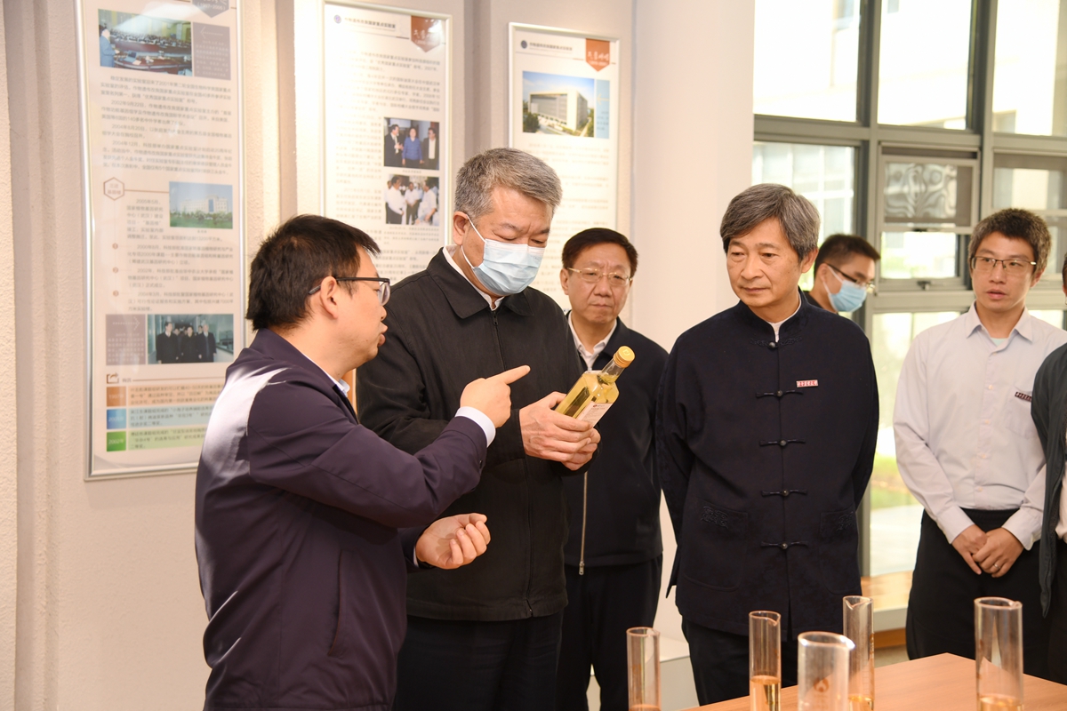 陈焕春院士汇报生猪健康养殖协同创新中心基本情况(记者 徐行 摄)