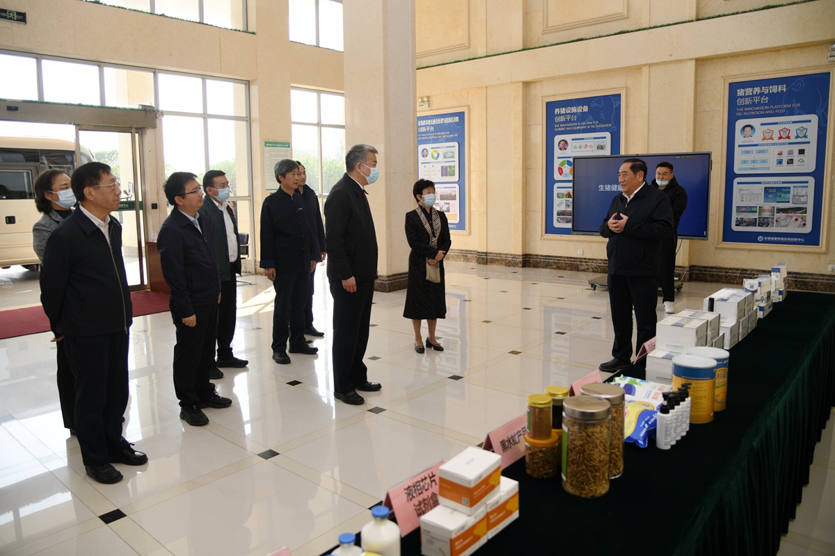 院长赵书红教授汇报了生猪健康养殖相关科技成果。李兵现场考察了动物疫病诊断中心,参观了生猪疫病防治药品、生猪养殖设备展示,详细询问了实验室在一流学科建设、动物疫病防控等方面情况。