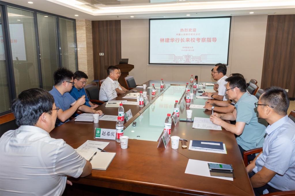 南湖新闻网讯(记者 彭雨格)9月30日上午,中国人民银行武汉分行行长林建华一行来校慰问动科动医学院肖少波、曹胜波教授。会前,校长李召虎热情接待了林建华一行并进行了简要交流。副校长王建鸿、杨少波陪同慰问。