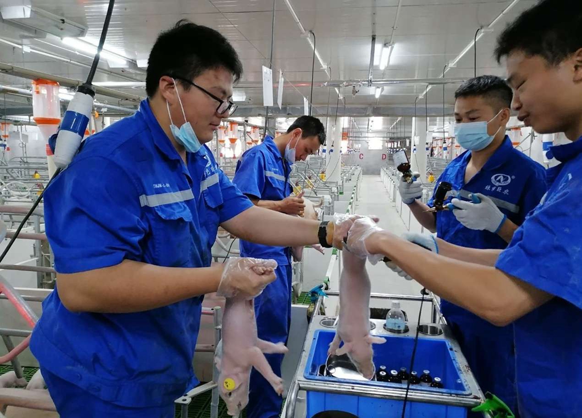 “不好了,小猪仔不行啦……”今年8月,刚到广西扬翔集团猪场实习的赵月桥同学,见到接种疫苗后的猪仔突然尖叫喘气、倒地抽搐、全身发红,以为自己闯了祸。企业“兽医教练”安慰她,那只是小猪接种疫苗后的应激反应。经过教练指导,赵月桥用凉水拍打仔猪后颈降温、在猪鼻上扎针放血,仔猪的应激状态逐渐缓解,活动自如。“只有亲身经历,书本上的知识才能转化为真知,很幸运能有这种实践机会。”赵月桥说。