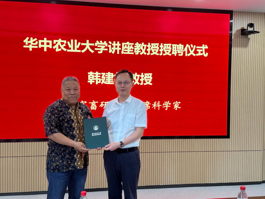 华中农业大学为韩建林教授举行了讲座教授受聘仪式,杨少波副校长为韩建林教授颁发了讲座教授聘书,对韩教授在过去对华中农业大学畜牧学科发展、科学研究给予的大力支持表示感谢,同时期待双方未来在人才引进、人才培养、科研合作等方面有更好的合作。学校人力资源部副部长赵希庆、动科动医学院党委书记刘兴斌、院长赵书红以及动科动医学院师生参加了活动。
