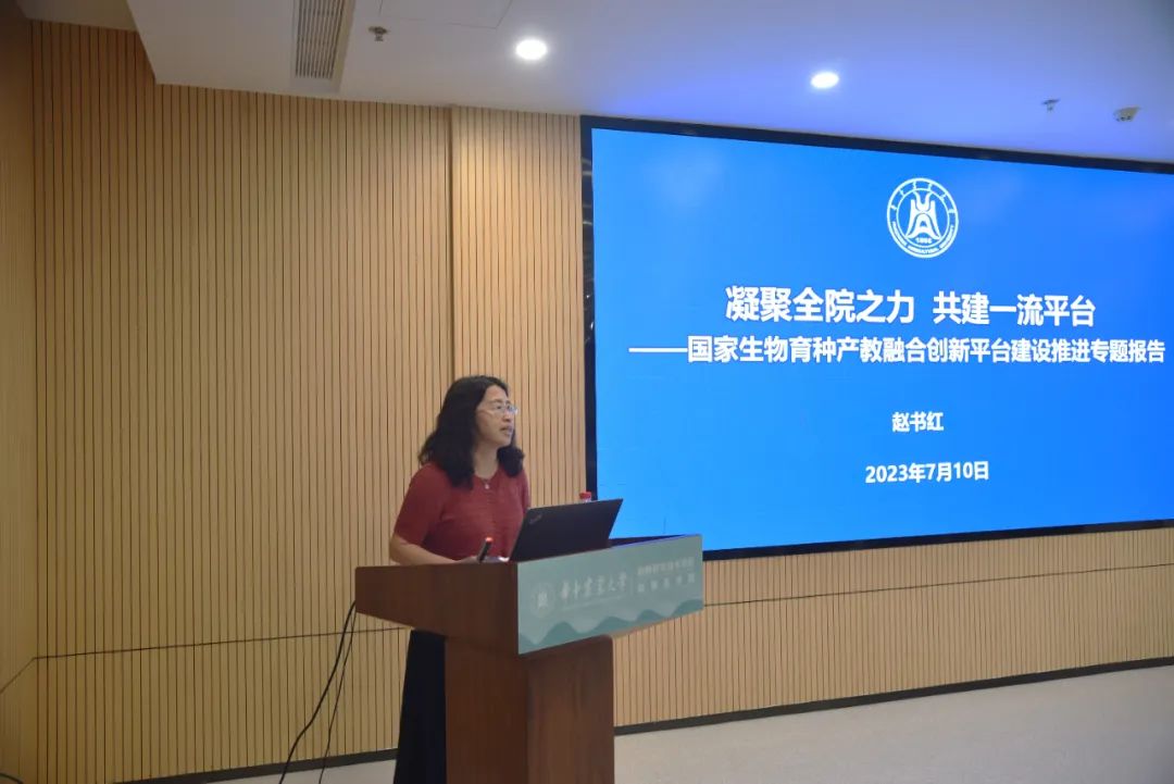 国家生物育种产教融合创新平台建设的背景、任务、进展,就进一步推进平台建设的提出了明确思路。她强调,国家生物育种产教融合创新平台不是某个团队的平台,更不是某个人的平台,而是全院(校)共有、全体师生共享的平台。平台建设需要每位教职工的密切关注、大力支持及建言献策,全力推进一流平台建设。