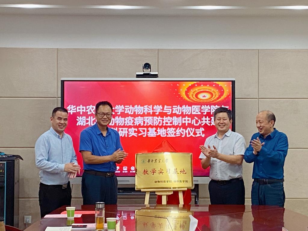 (通讯员 刘嘉)11月2日,华中农业大学动物科学技术学院动物医学院与湖北省动物疫病预防控制中心共建教学科研实习基地签约及授牌仪式在省动物疫控中心举行。学院副院长彭贵青和省动物疫控中心主任谢军代表双方签署协议书,学院党委书记刘兴斌为基地授牌。