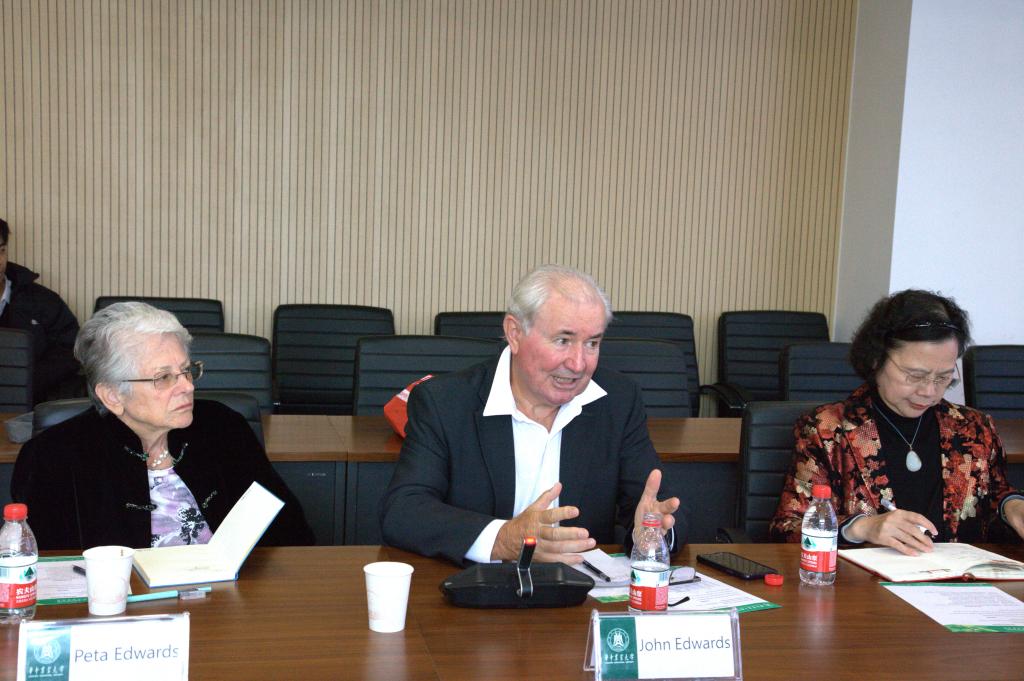 报告结束后,与会教师们与John Edwards进行进一步交流。彭贵青介绍华中农业大学的发展历程,赵凌汇报华中农业大学现有学科、师资力量及取得成果。John Edwards对华中农业大学取得的成就表示肯定,并表示愿意进一步支持推进双边未来的人才培养及科研合作。