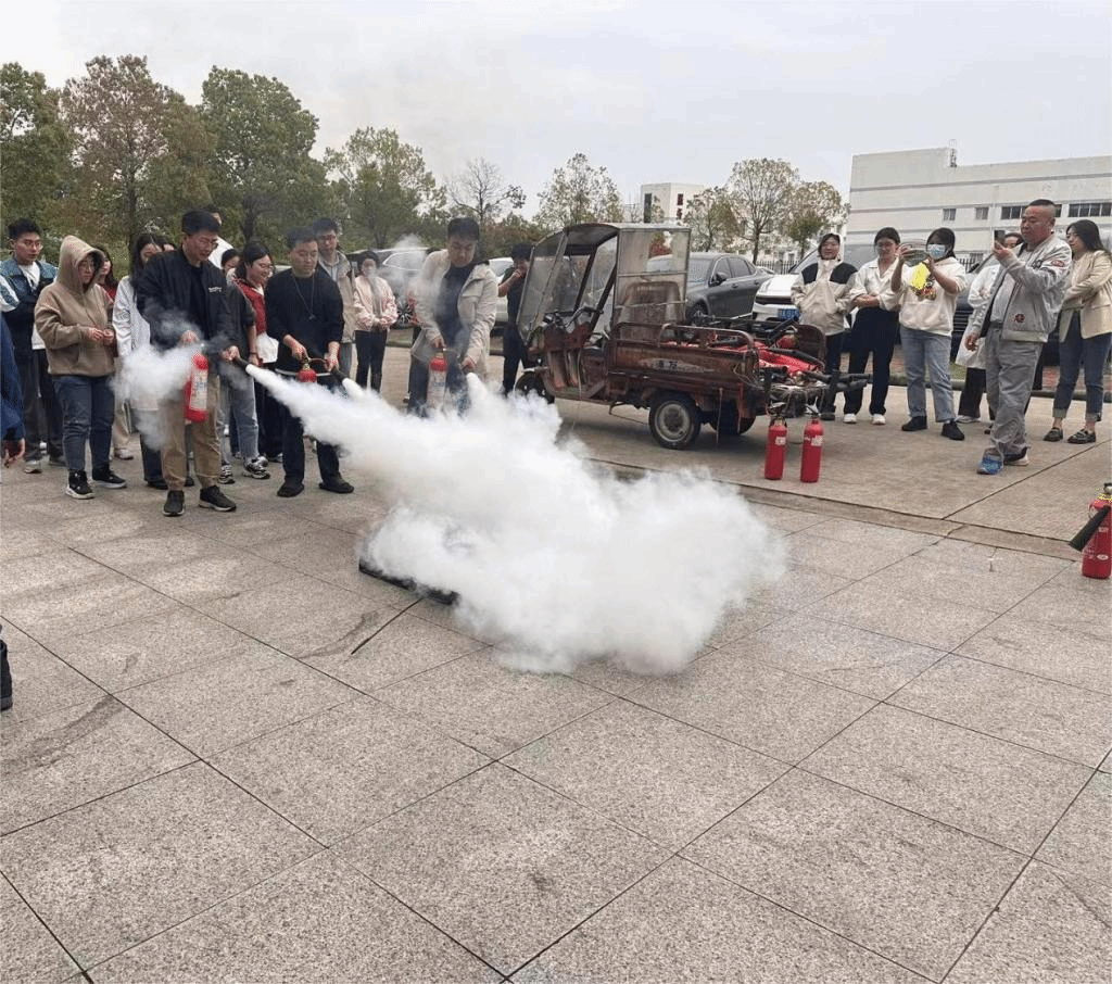 随后,建安部消防安全建设与管理科对在场师生进行了灭火器的种类、原理、适用范围以及使用注意事项的介绍,并现场进行灭火器使用培训,演示如何正确提起灭火器、拔掉保险销、握住喷管喷嘴、对准火源根部、压下压把进行喷射等步骤。