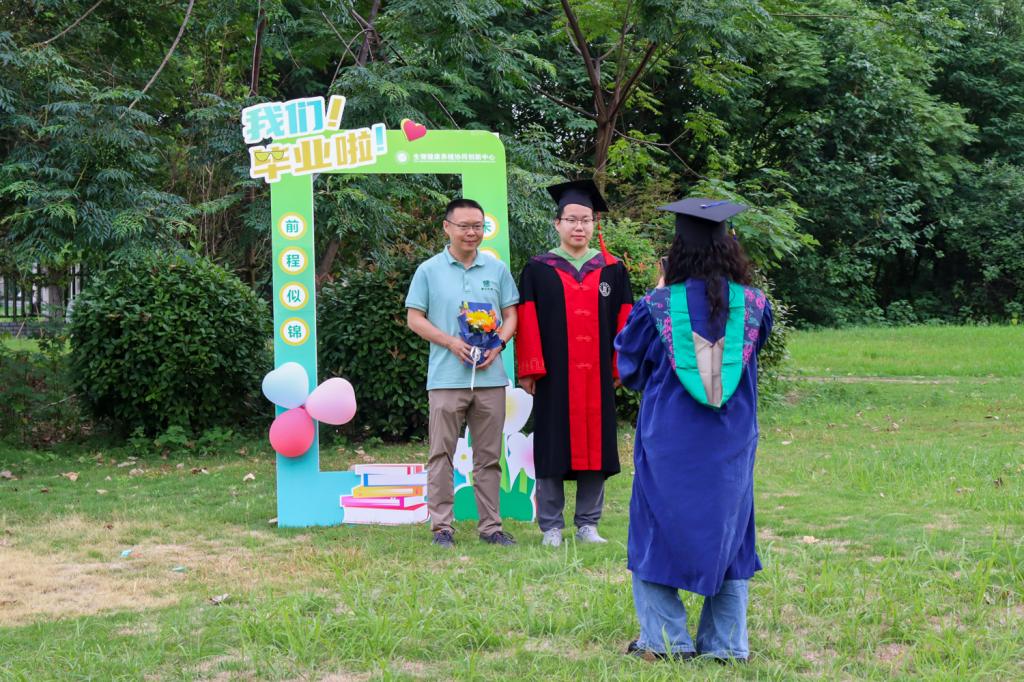 崔潞晴博士接受导师送花(学通社记者 韩鑫垚 摄)