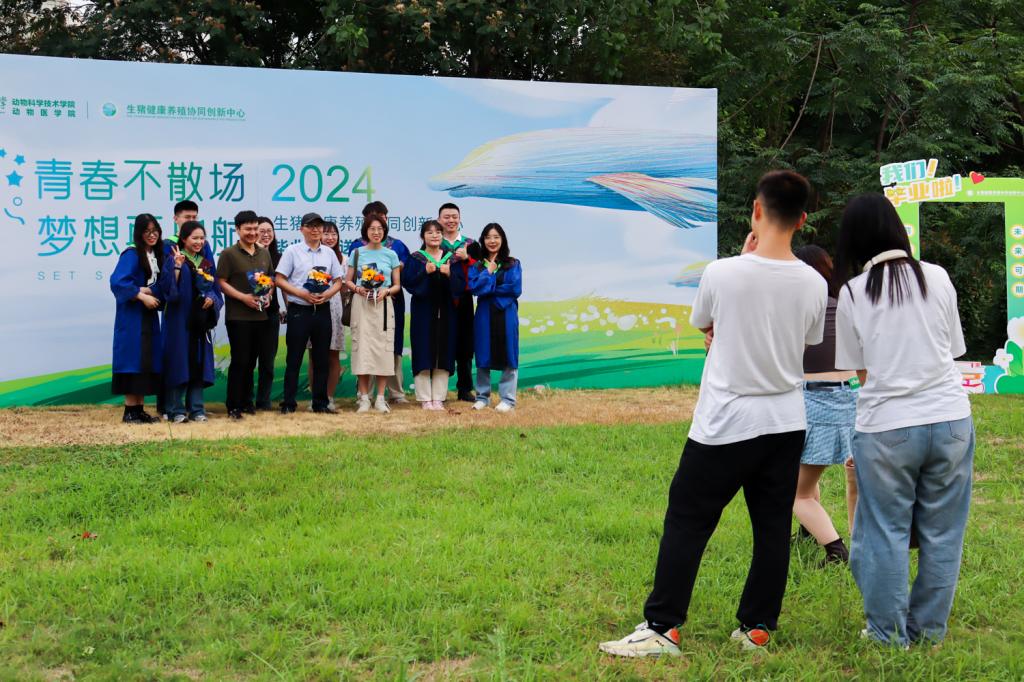 活动接近尾声,毕业生踊跃与导师合影留念,现场气氛活跃。2021级兽医公共卫生与食品安全专业硕士毕业生胡雅文同学说:“今天为研究生求学生涯画上了句号,我的心情非常激动。毕业不是终点,而是新征程的起点,今后我也会不忘初心,勇敢追梦。”