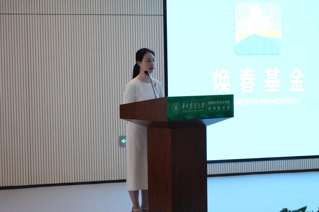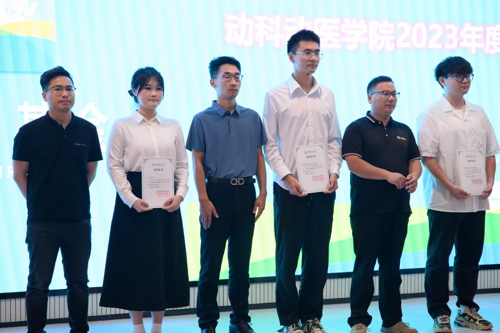 工作人员宣读表彰决定后,与会嘉宾为获奖师生颁奖。获奖学生代表、2022级兽医公共卫生与食品安全专业硕士研究生彭泰筼在发言中提到,“饮水思源,缘木思本”,感谢陈焕春院士、各位企业家和校友们对学院人才培养工作的支持及对学院学子全面发展的关心。“青春正逢盛世,成长恰如其时”,未来她会继续秉承“勤读力耕、立己达人”的校训,牢记“动科动医,永争第一”的学院精神,坚定理想信念,夯实专业知识储备,提升实践能力和创新能力,争做有理想、敢担当、能吃苦、肯奋斗的动科动医人。