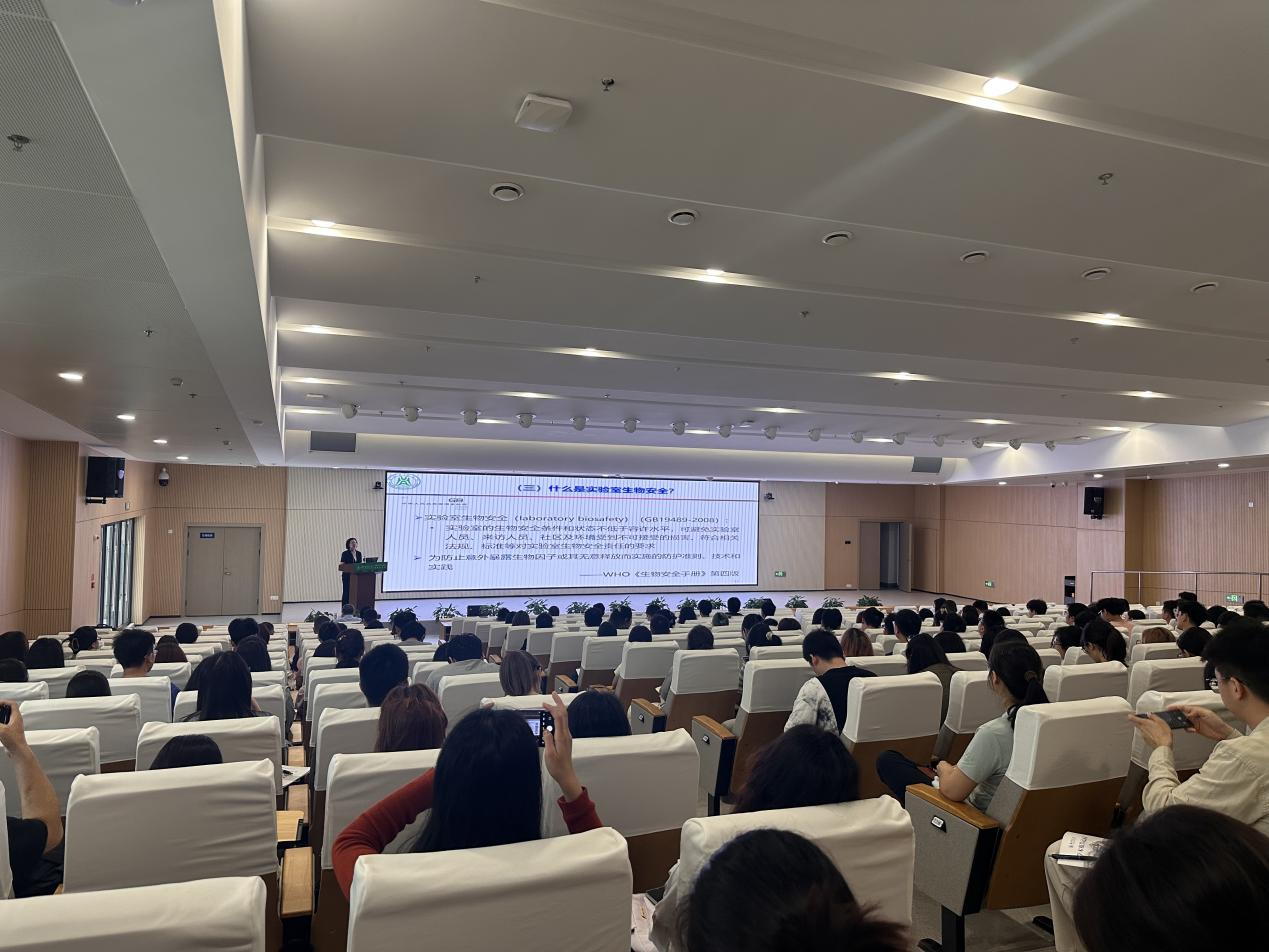 (通讯员 李靖宇)6月11日上午9:00,学院“安全生产月”系列活动之实验室生物安全培训在第四综合楼F101报告厅举行。华中农业大学生物安全三级实验室主任郭爱珍教授应邀作了题为“实验室生物安全:从理念到行动”的讲座。动科动医学院、水产学院、生物医学与健康学院等师生近400人参加。培训由学院副院长胡丽华主持。