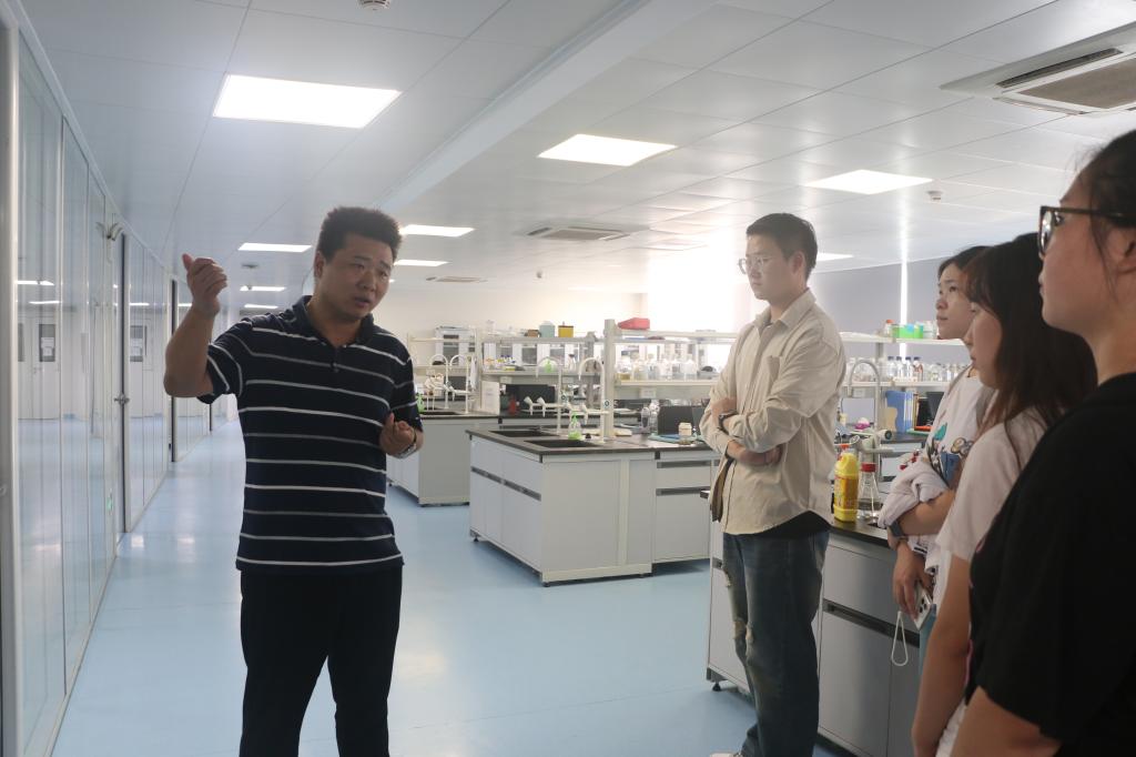 同学们在张华伟的带领下参观了研究中心的各类实验室,包括分子生物学实验室、生产生物学实验室、细胞悬浮培养实验室等。他介绍到,细胞悬浮培养工艺及生物反应器等是当前较为先进的细胞培养技术,在生产中有广泛的应用前景。同学们在参观中对该类技术进行初步了解。