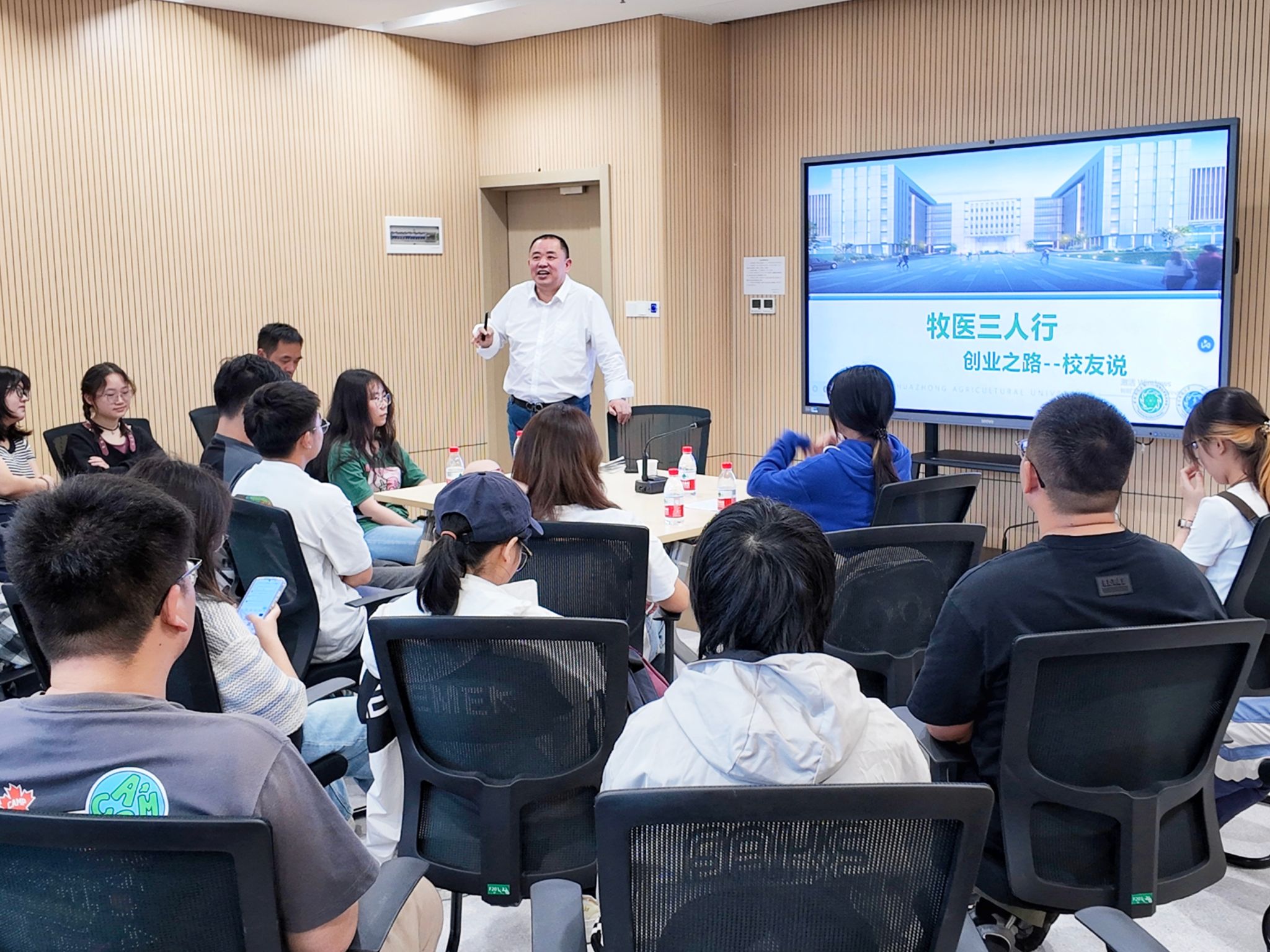 在四综F201举办了“牧医三人行|创业之路——校友说”活动。本次活动特邀四川省旺达生物饲料股份有限公司总裁、川渝校友会会长余大军作为嘉宾,分享其创业历程与职业规划心得。