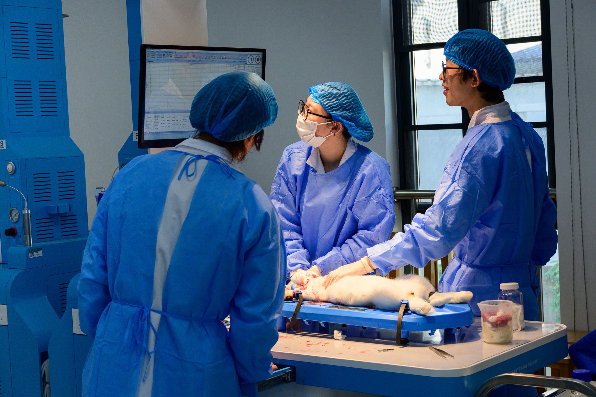 世界兽医日当天,华中农业大学教学动物医院里人头攒动,“探秘兽医的一天”活动在此开展。活动中,胡长敏教授化身“领路人”,带领同学们参观医院多个区域。从预防门诊的专业检查装置,到异宠门诊的特殊诊疗注意事项;从超声和CT室的先进设备,到康复中心中医针灸在宠物康复中的妙用,再到猫科、犬科注射室和化验室,每一处都讲解得细致入微。走进手术区,胡长敏特别指出:“手术室必须严格遵守无菌要求。为了避免污染,手术室的门都用脚进行开关。”