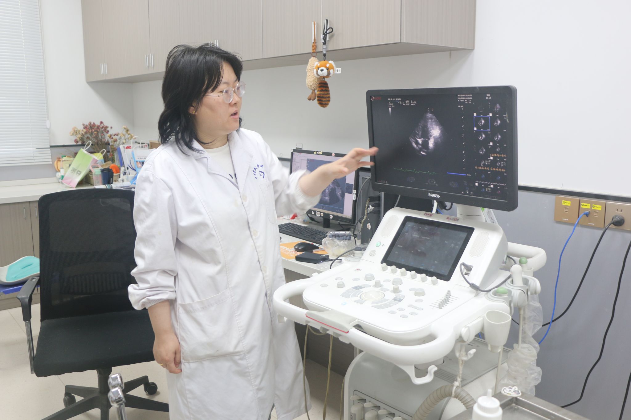 影像学医生在超声室告诉同学们,探头频率的选择非常关键:“鸟类因胸骨隆突需采用12MHz高频探头,而大型犬则适用5MHz凸阵探头。”屏幕上动态显示一例心脏病例,直观呈现了B超在心脏疾病诊断中的价值。