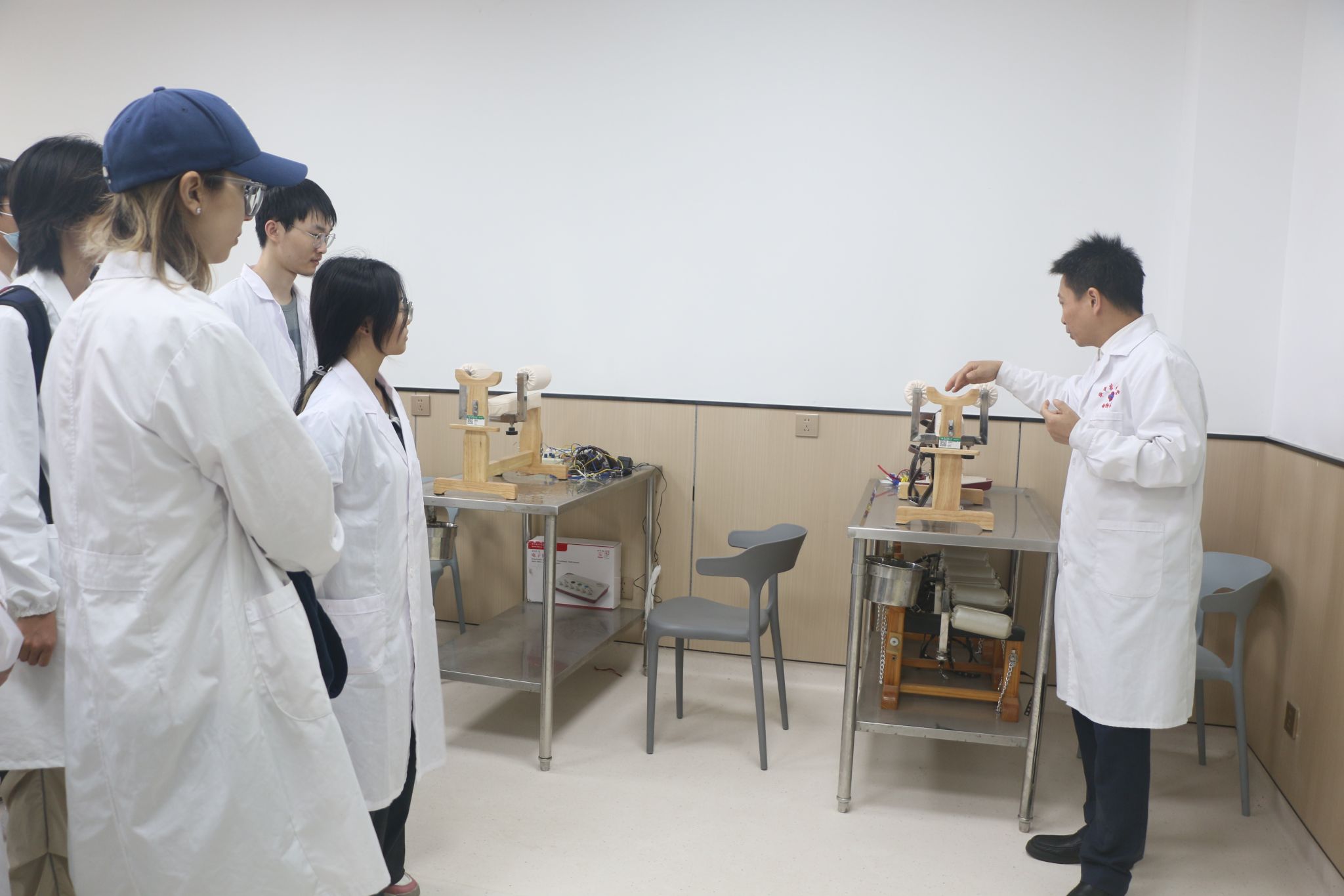 在中兽医康复中心,胡长敏向同学们介绍了新型中药制丸机的运作流程,以及针灸等传统中兽医诊疗方法。