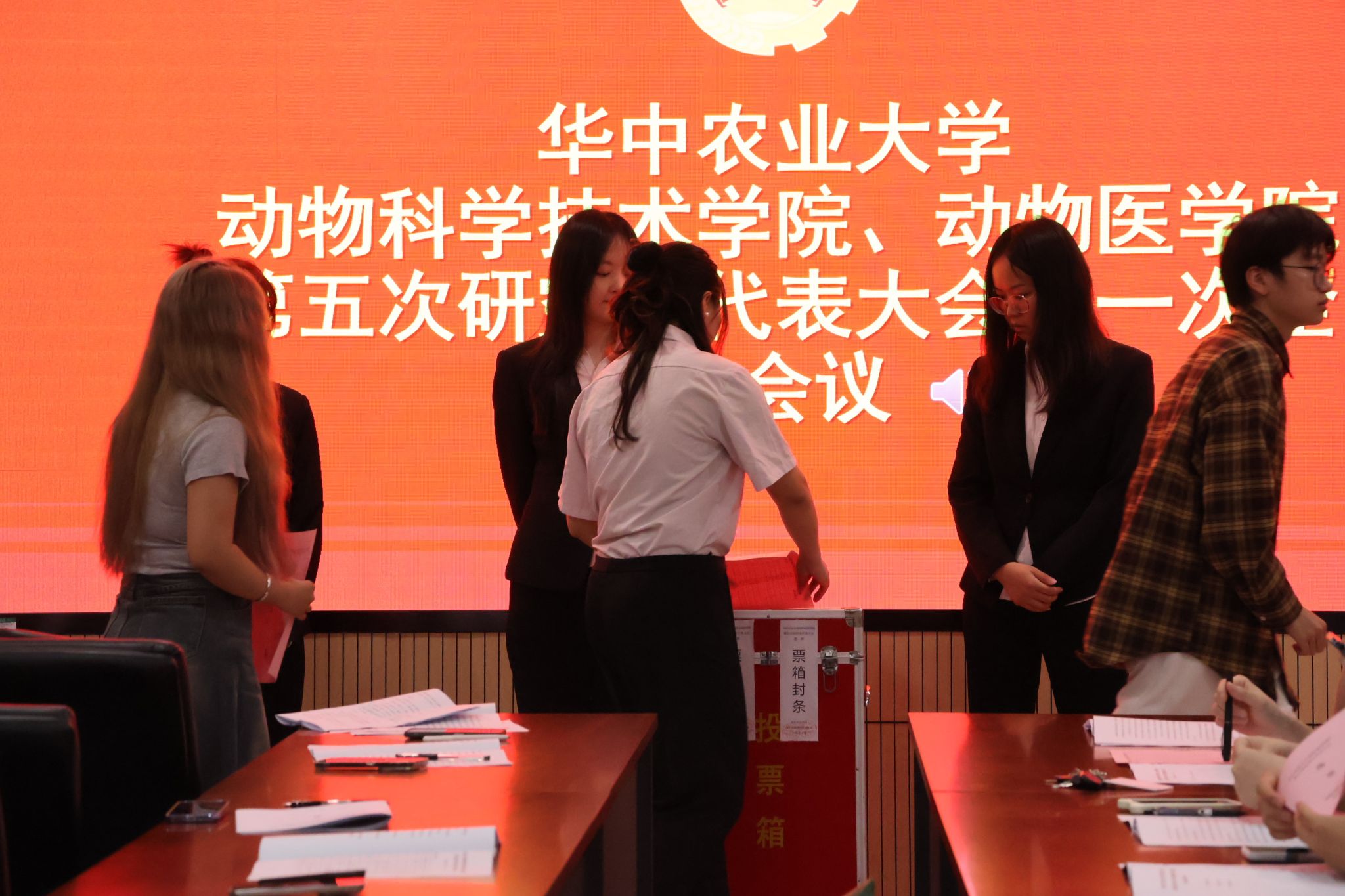 会议在庄严的国歌声中拉开序幕,全体代表以举手表决的方式全票通过了选举办法、总监票人、监票人、计票人建议名单和学院代表候选人名单。最终,通过投票选举产生杨依晨等24名华中农业大学第二十次研究生代表大会88看球直播