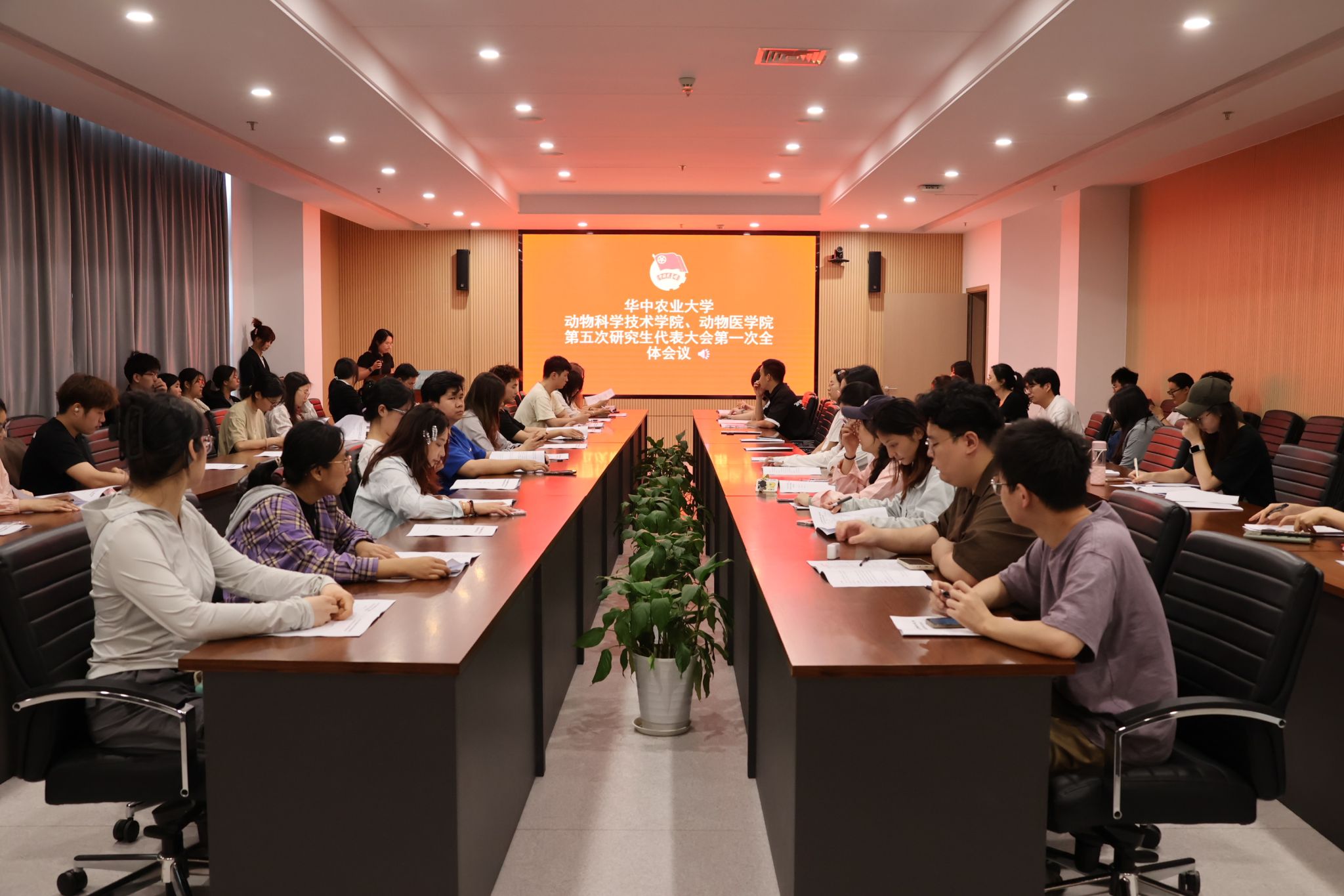 第五次研究生代表大会在第四综合楼D207会议室举行,会议由学院研究生辅导员汪楚琪主持,学院研究生辅导员杨程龙及47名研究生代表出席本次会议。