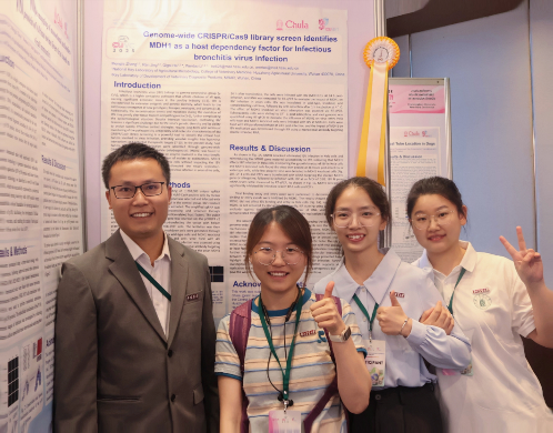 博士后张梦佳的科研成果《Genome-wide CRISPR/Cas9 library screen identifies MDH1 as a host dependency factor for Infectious bronchitis virus infection》荣获“TPI研究海报展示一等奖”,研究成果获国际评审认可。