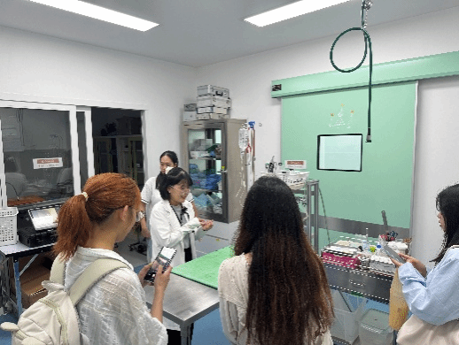 同日,另外5名学生来到了位于曼谷的Animal Space Hospital,这是一家以治疗兔子、鸟、乌龟等异宠为主的宠物医院。在这里,同学们了解到异宠在生理结构、疾病种类和诊疗方法上与传统宠物的差异。医院的兽医们向大家展示了各种异宠的检查设备和治疗手段,如小型动物专用的X光机、超声诊断仪等,还分享了在异宠麻醉、手术以及疾病护理方面的经验和技巧。