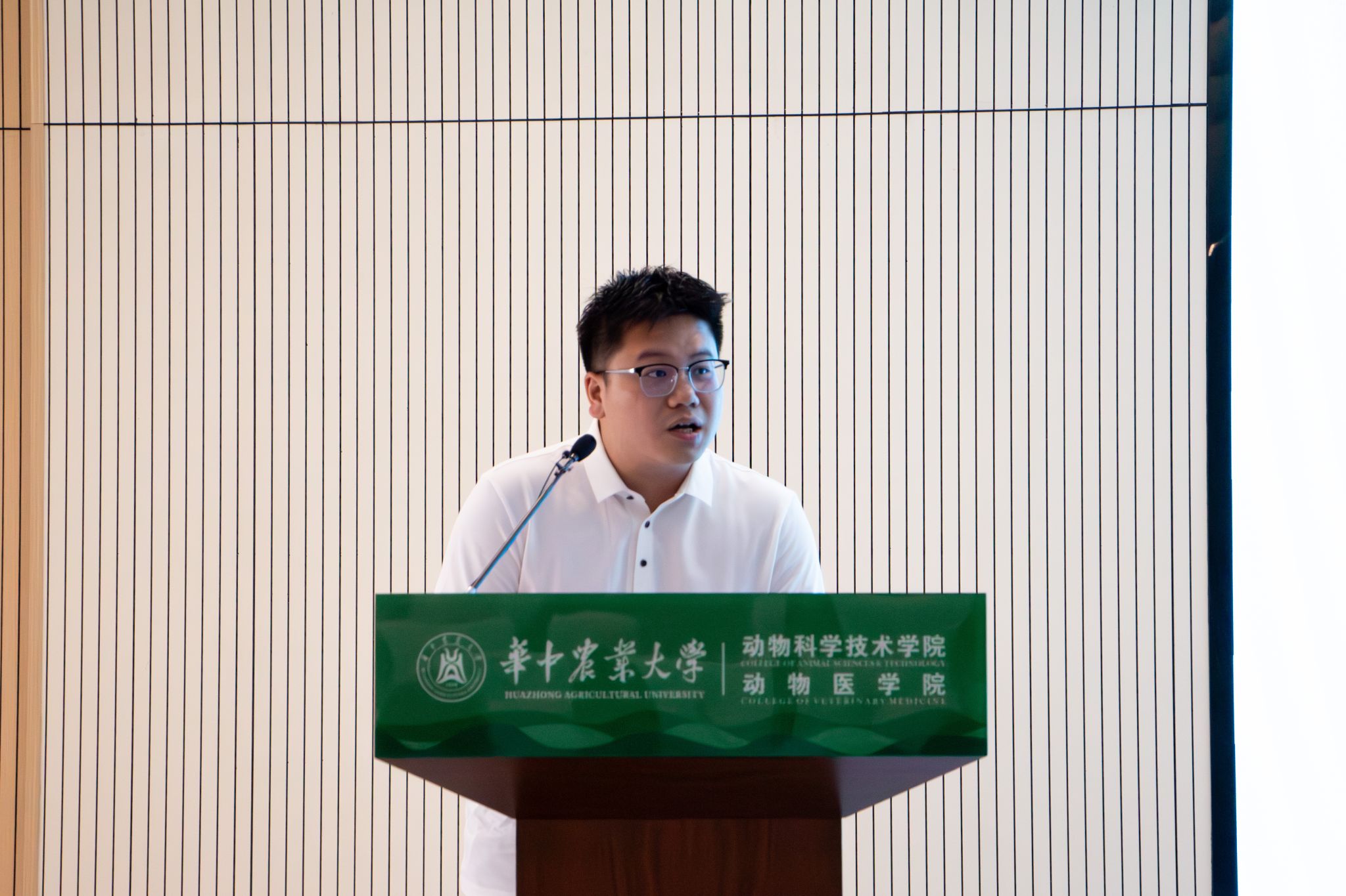 动物医学2003班本科生李权智作为获奖学生代表发言。李权智回顾了自身成长历程,他谈到自己通过华中农业大学少数民族预科计划从云南边陲小城来到武汉,在动物医学专业的学习中逐步实现了儿时成为兽医的梦想。通过课堂学习、实习实践、科研竞赛等经历,他深刻领悟到“牧医人”的使命——运用专业知识守护动物与人类健康,从源头防控疫病传播。他感谢学校提供的平台和资源,使其得以在专业学习与社会实践中全面发展,未来将继续在学校深造,致力于动物疫病防控研究,以实际行动践行青年学子的责任担当。