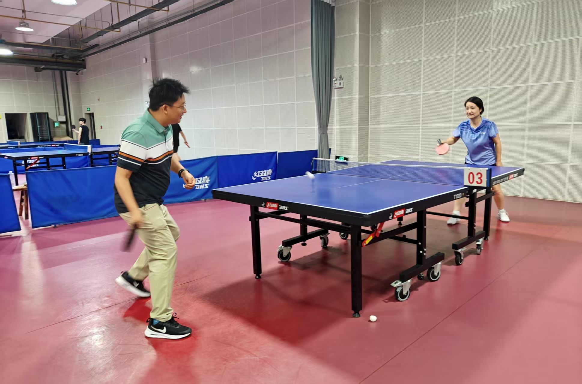 除了单人赛,活动还特别安排了双人赛切磋环节。在双人赛中,选手们与搭档密切配合,共同应对对手的挑战,场上默契的配合和精湛的球技赢得了观众们的阵阵掌声。