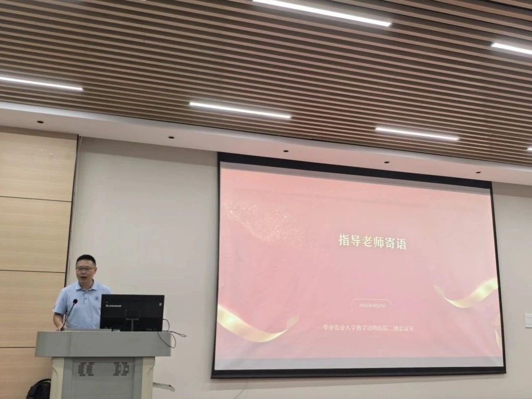 7月17日晚,华中农业大学动物医院2025年教学实习总结暨表彰大会于华中农业大学动物医院401报告厅顺利举行。动物科学技术学院动物医学院副院长赵凌教授、教学实习主管柴倩老师,动物医院首席兽医师丁明星教授,实习指导教师胡长敏教授、丁一教授、朱聪副教授,以及全体带教教师和医生助理、全体实习生到场参会。会议围绕着“感恩同行·筑梦未来”的主题,以对过往的实习深度回顾,以及对未来兽医行业发展的殷殷憧憬,开启精彩议程。