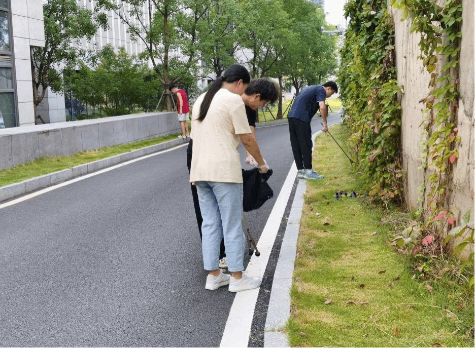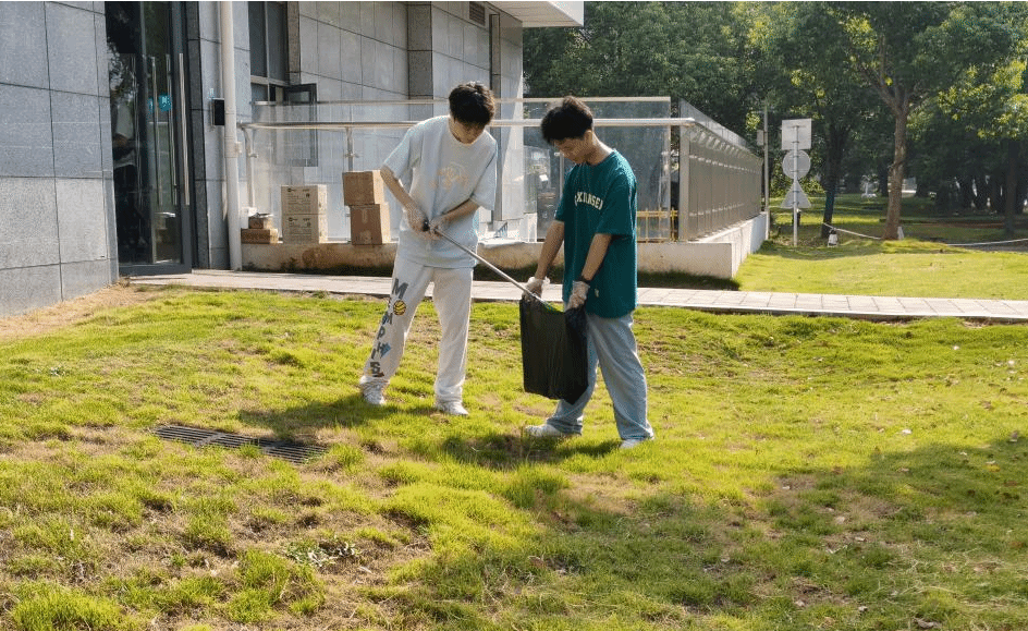 师生到达第四综合楼后在学院办公室及物业部老师的指导下进行分工,在向志愿者们简要讲述清洁事项后各组志愿者领取打扫工具,开始在第四综合楼内外及周边公共绿地开展卫生清理工作。大家分工协作,默契配合,忙碌的身影成为校园里一道亮丽的风景线。