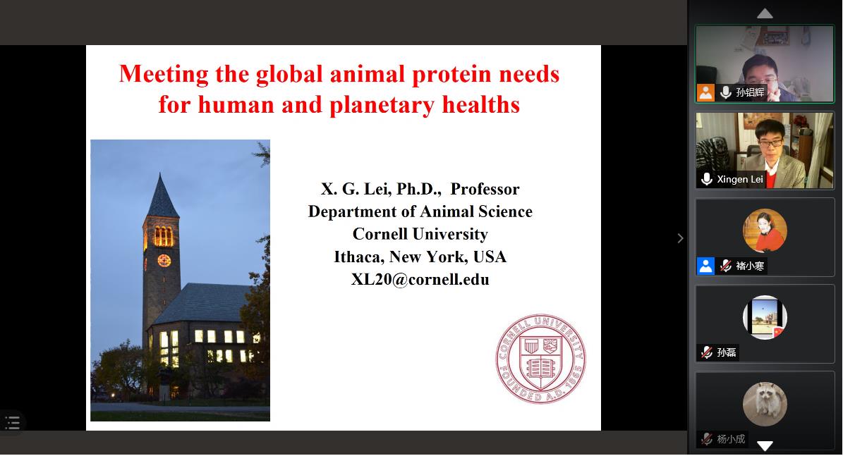 (通讯员 褚小寒)12月11日上午,美国康奈尔大学雷新根教授应邀做客动科动医学院“创新、创造、创业”高端论坛,带来了题为“如何满足全球动物蛋白的需求”的学术报告。校内外50余名师生线上参加了此次学术报告会。报告会由动科动医学院孙铝辉教授主持。