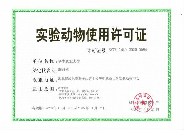 实验动物中心现已成为华中地区以及全国农业系统首个具备无菌动物生产与使用合格证的单位。