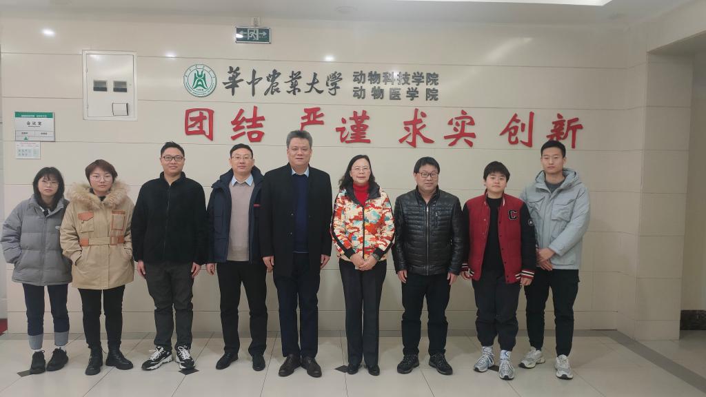 2022年1月15日上午8点30分,华中农业大学郭爱珍教授、陈建国副教授及其疫苗研发团队与天康集团生物技术中心主任贺笋博士、制药事业部技术中心负责人郝成武在动科楼105就2021年合作项目进展及对2022年的研究计划进行深入交流。