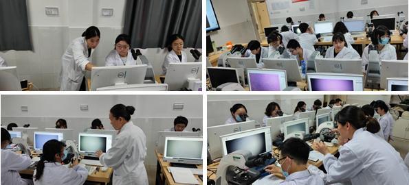 《操作技术》首次开课,范盛先老师对两百余名选课学生进行课程介绍和实验室安全教育,同学们完成线上实验室安全教育测试,并签订《实验室安全告知书》。在实验教学环节,刘晓丽老师借助雨课堂发布的“预习测试题”进行现场考核,并针对学生错误率高的内容进行重点讲解与总结点评,颠覆“老师讲、学生听”的传统实验教学模式。进入实操环节,同学们根据预习视频中的讲解练习显微镜的使用,由4名教师组成的教学团队在现场做一对一指导、答疑,手把手规范操作技术。最后,同学们还需要通过显微镜使用实操考核、提交图像处理作业。
