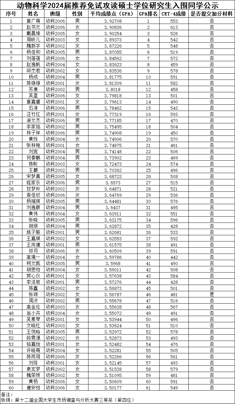 2024年推荐优秀应届本科毕业生免试攻读硕士学位研究生遴选方案》,经个人申请、资格审核,咨询评审小组意见,现将2024届推荐免试攻读研究生入围名单进行公示。下一步将进行专家遴选小组审核鉴定。