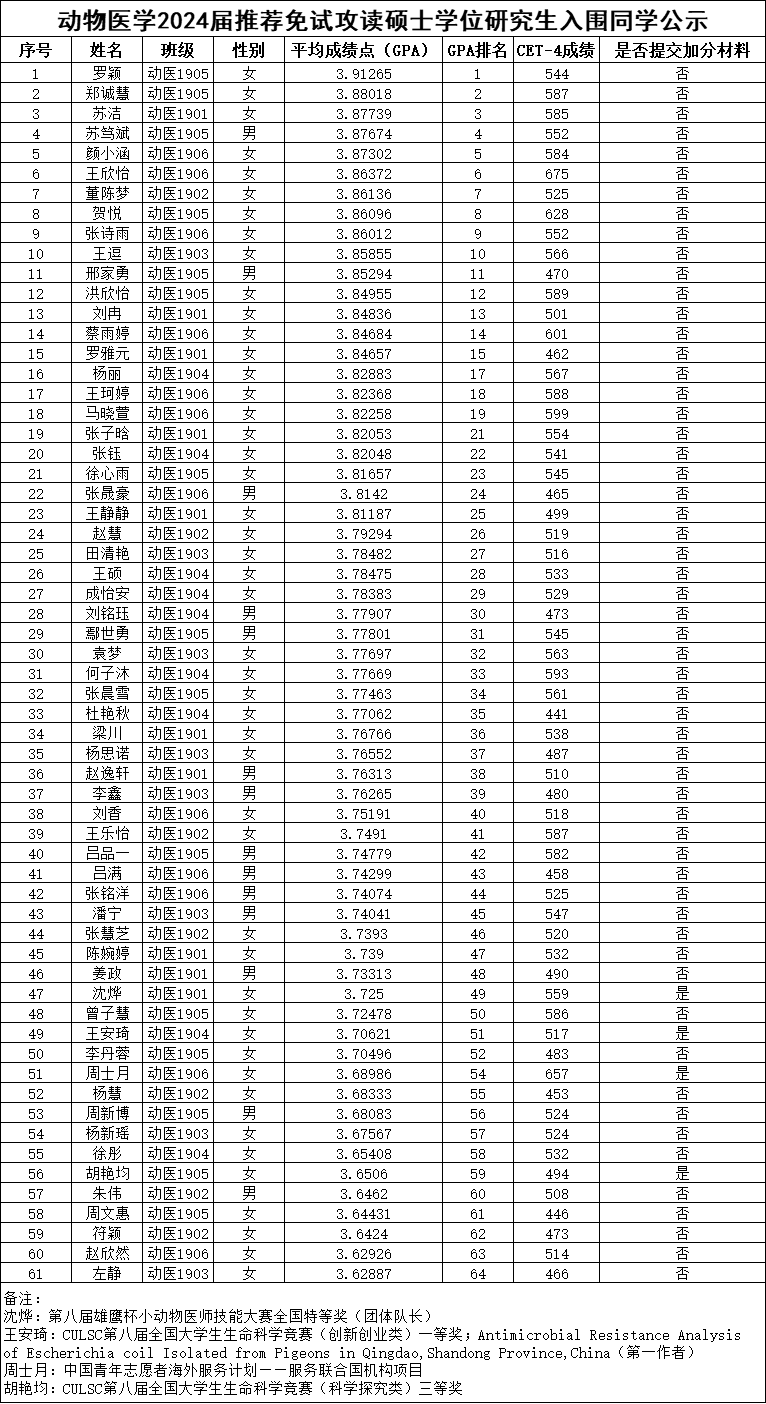 2024届推荐免试攻读硕士学位研究生入围名单公示