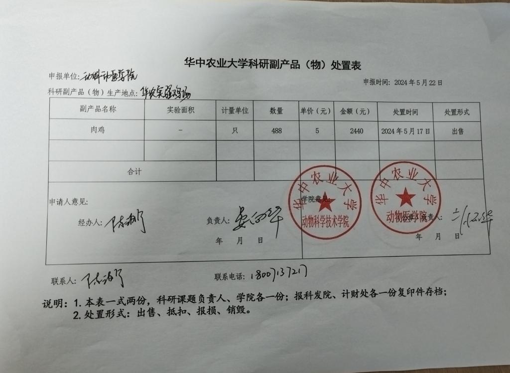 华中农业大学科研副产品(物)处置公示