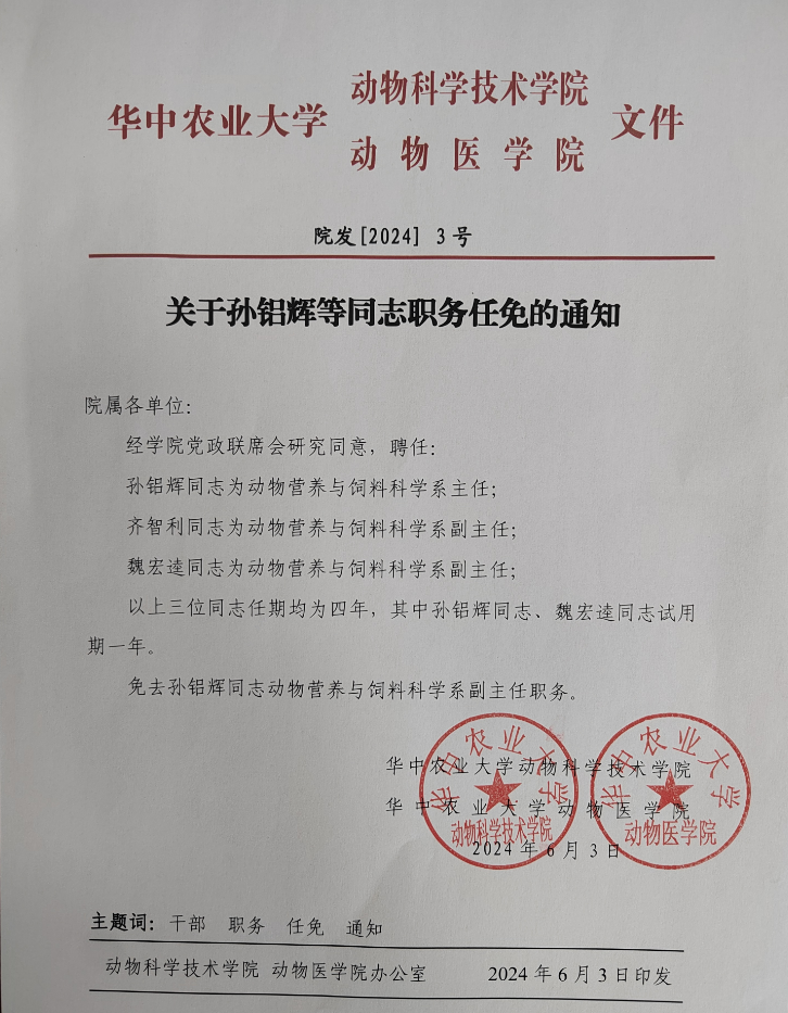 关于孙铝辉等同志职务任免的通知