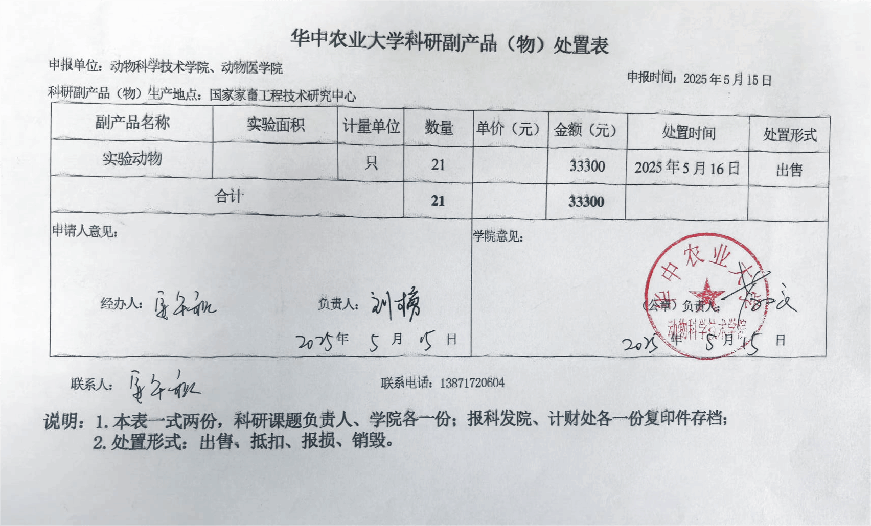 华中农业大学科研副产品(物)处置公示