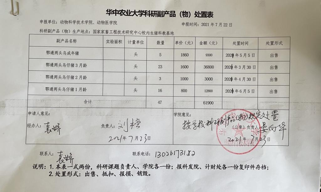 华中农业大学科研副产品处置表