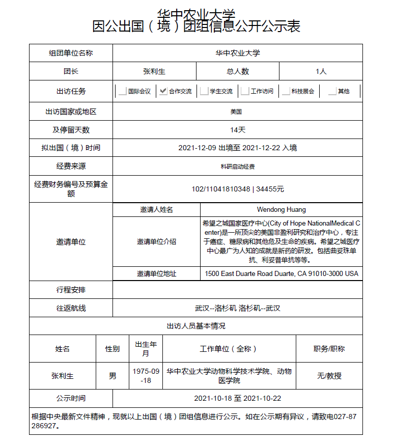 2021因公临时出国(境)人员公示