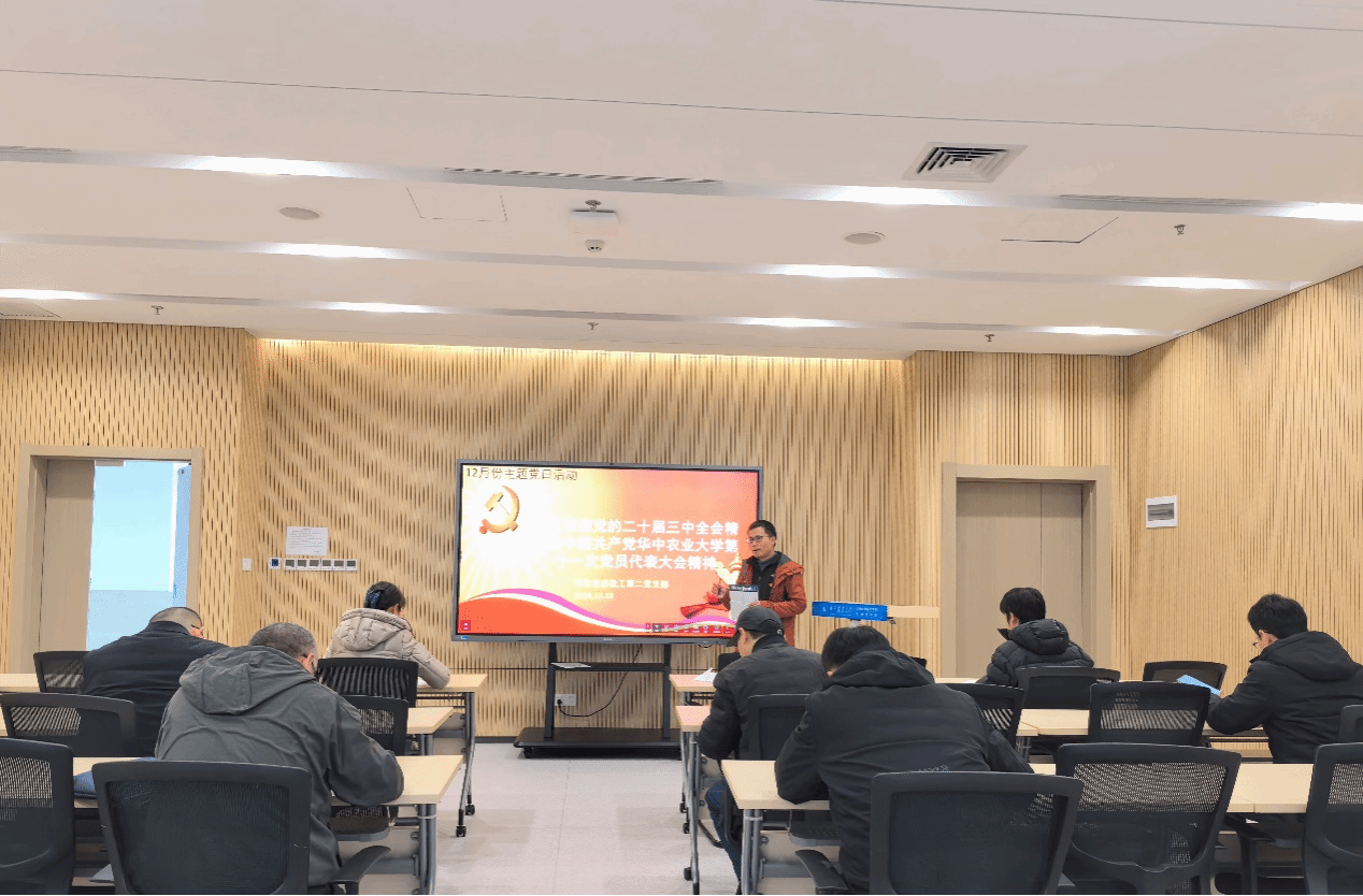 李文涛老师首先领学了《中国共产党华中农业大学第十一次党员代表大会》会议精神,解读了高翅书记在党代会上作的报告《以质图强 融创致新 奋力谱写建设特色鲜明世界一流大学新华章》,并对学校内涵式高质量发展的整体战略布局进行了介绍。他强调,今后五年,要统筹推进时代英才培育行动等“八项行动”、提升拔尖创新人才自主培养能力等“八力”、统筹实施体质强健计划等“十三项计划”,坚持改革创新,做到“五个必须”,加快建设特色鲜明世界一流大学。他还特别对于本学系工作紧密联系的相关内容进行了全面阐释,指出人才团队建设中存在师资结构不是很合理的问题,提出了加大青年教师引进力度的重要建议。