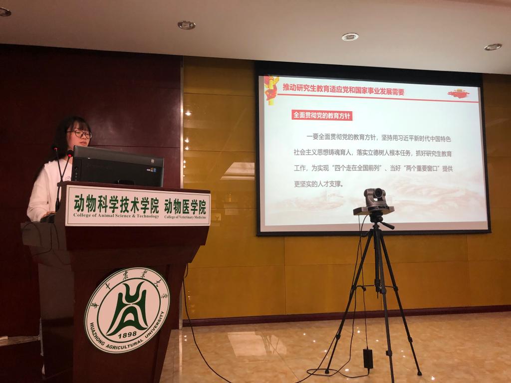 在七月底召开的全国研究生教育会议上,习近平强调,研究生教育在培养创新人才、提高创新能力、服务经济社会发展、推进国家治理体系和治理能力现代化方面具有重要作用。为学习贯彻习近平总书记对研究生教育工作作出的重要指示精神,动科动医学院研究生基础兽医学第九党支部开展了相应的党日活动。
