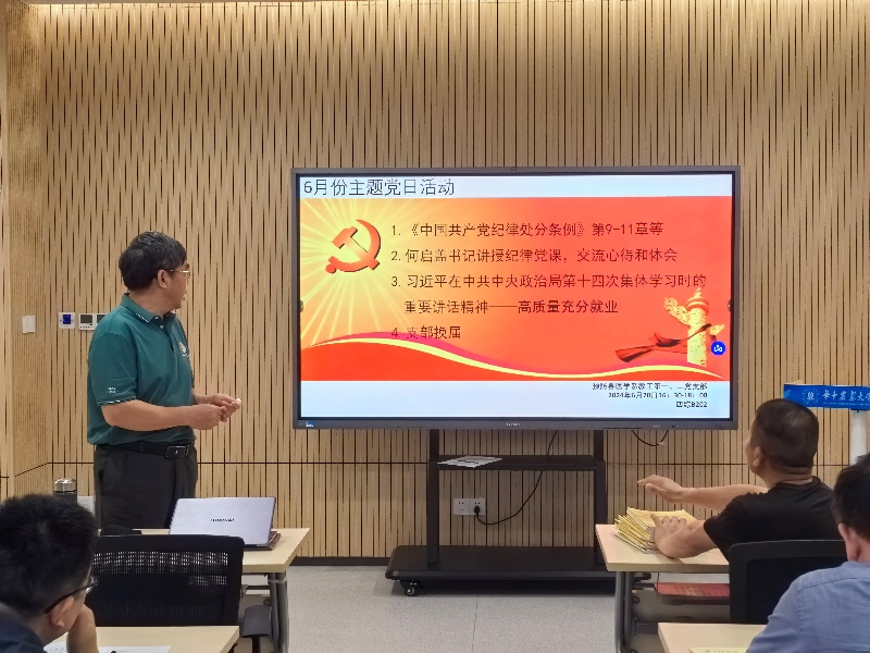第四综合楼B202会议室开展了专题党课,学习《中国共产党纪律处分条例》。本次党课由预防兽医学教工第二党支部书记何启盖讲授,第一、二党支部的全体党员参与了学习。