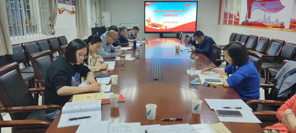 (通讯员 杨鹏超)4月22日下午,行政教工党支部在动科楼B105会议室召开党员大会,集中进行专题理论研学。全体支部党员参加研学,党支部书记常帅同志主持会议。