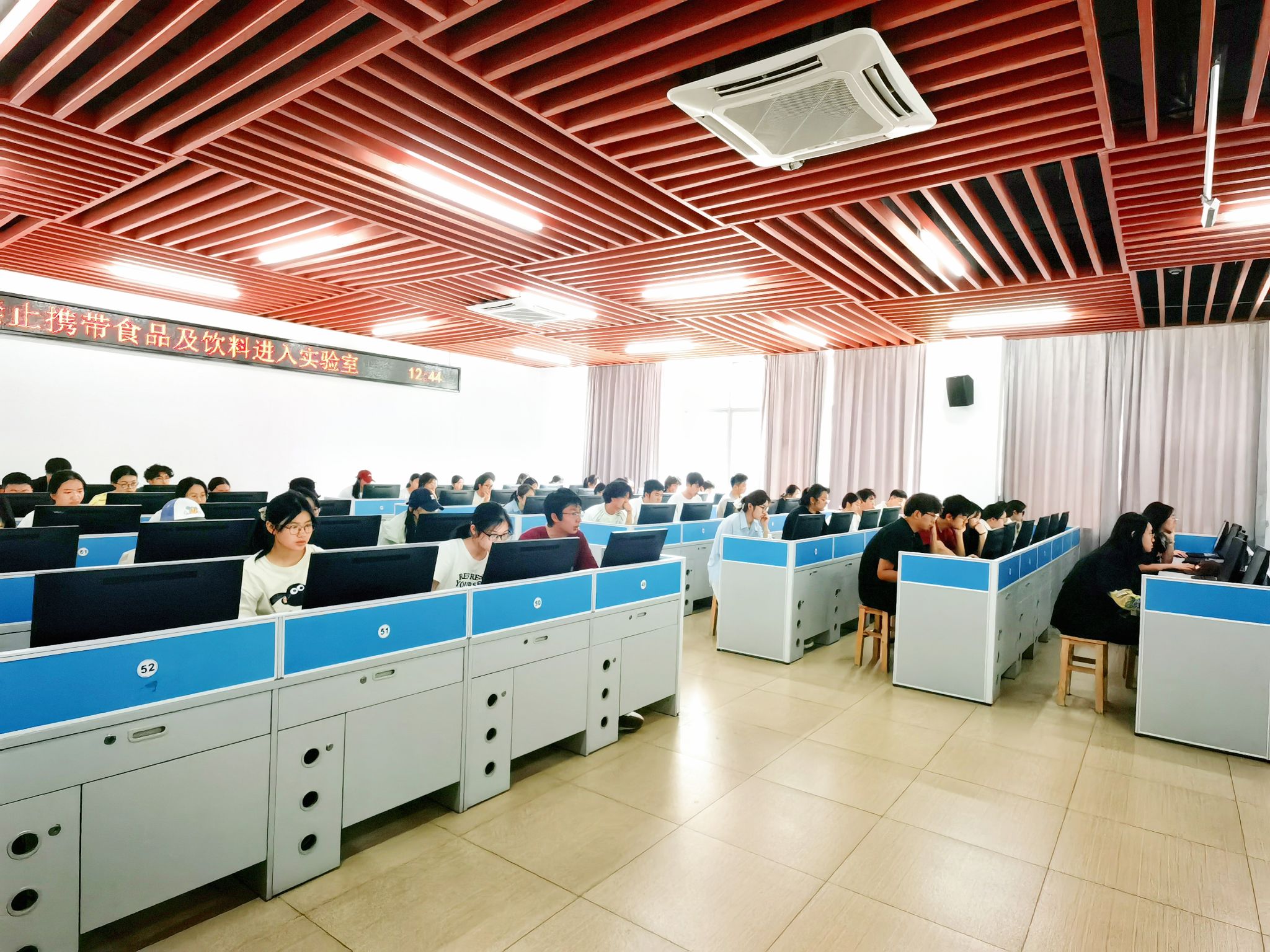 考试采用线上答题模式,旨在检验入党积极分子们的理论学习成果,帮助入党积极分子端正入党动机、坚定入党信念。考前,入党积极分子在党建工作人员的组织下按时进行签到、登录等考场要求环节。考试开始后,工作人员和学院辅导员程唐煜在考场中进行巡视,各位入党积极分子神情严肃,认真作答。作答完毕后,各位入党积极分子依次交卷,有序离场。
