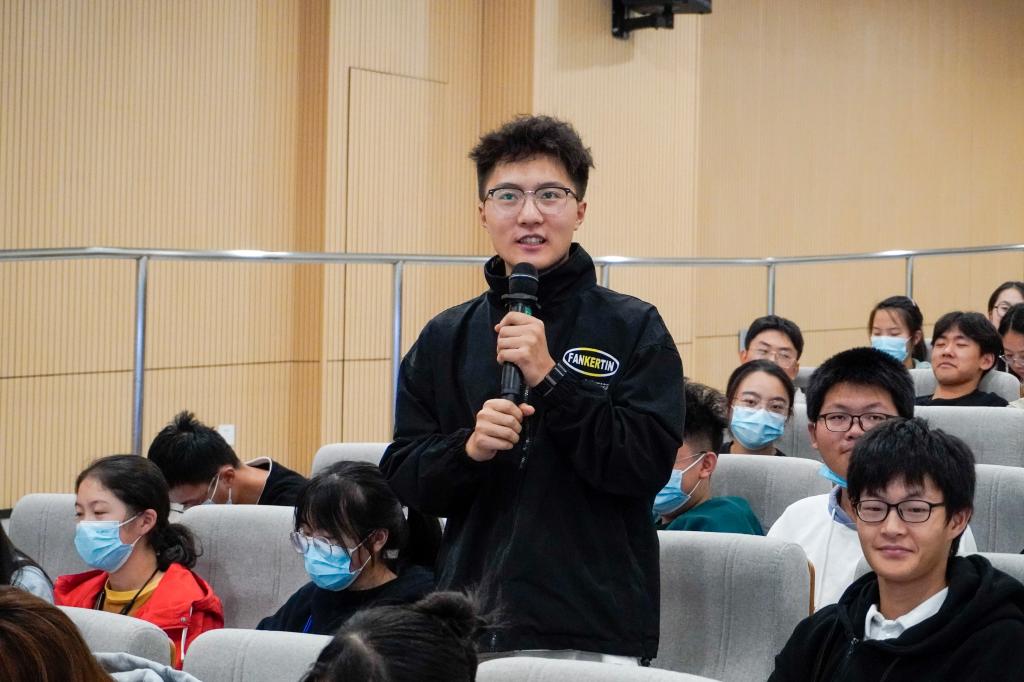 在强调“青年时代学习”重要性时,章佳文结合自身大学生活,以学习生活、课余活动两个方面为例,提醒同学们学习小技巧、积极参加班级活动、社团活动,并鼓励同学们勇于尝试、创造专属于自己的大学时光。