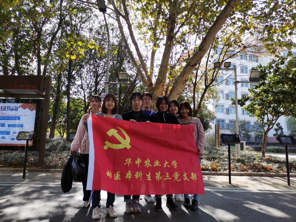 内容提要:2019年11月15日(星期五)中午12点20分,动医本科生第三党支部在南湖旁开展了“志愿服务党员先行”主题实践活动,动医本科生第三党支部全体在校成员参加了本次活动。