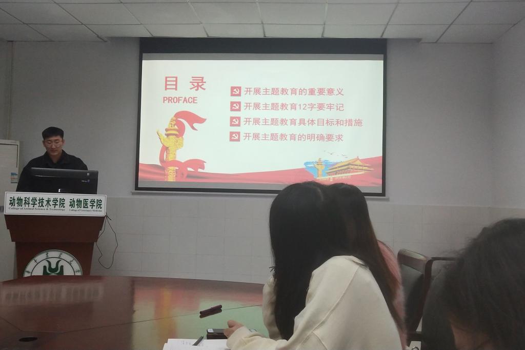 (动科动医学院通讯员 陈玉坤)2019年11月20日,动科动医学院预防兽医研究生第十二党支部在动科楼B105开展“支部书记讲党课”主题教育活动。活动由支部书记杨承杭同志主持,部分积极分子和全体党员参加。本次“支部书记讲党课”主题教育活动主要围绕“坚定理想信念,牢记初心使命”为主题开展。