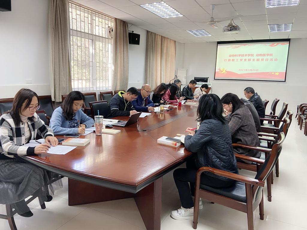 (通讯员 卢禧东)3月25日上午,学院行政教工党支部在动科楼B105开展“学党史强党性,学榜样见行动”的主题党日活动,行政教工党支部全体成员参与了本次活动,活动由常帅同志主持。