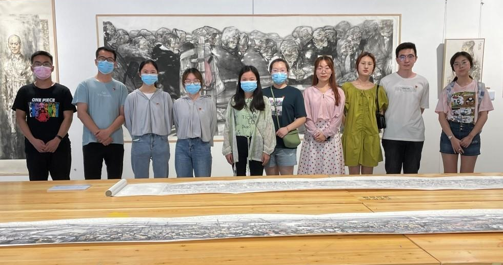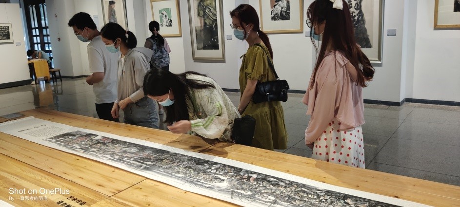 丹青颂百年伟业,翰墨绘盛世中华。为庆祝中国共产党百年华诞,华中农业大学校艺术馆举办了庆祝中国共产党成立100周年的画展。画展分为不同主题,每个主题各有特点,给支部同志们留下了深刻印象,特别是一幅抗击疫情的长卷画,生动刻画了在抗击疫情工作中,党委领导,政府负责,人民群众参与的历史画面。